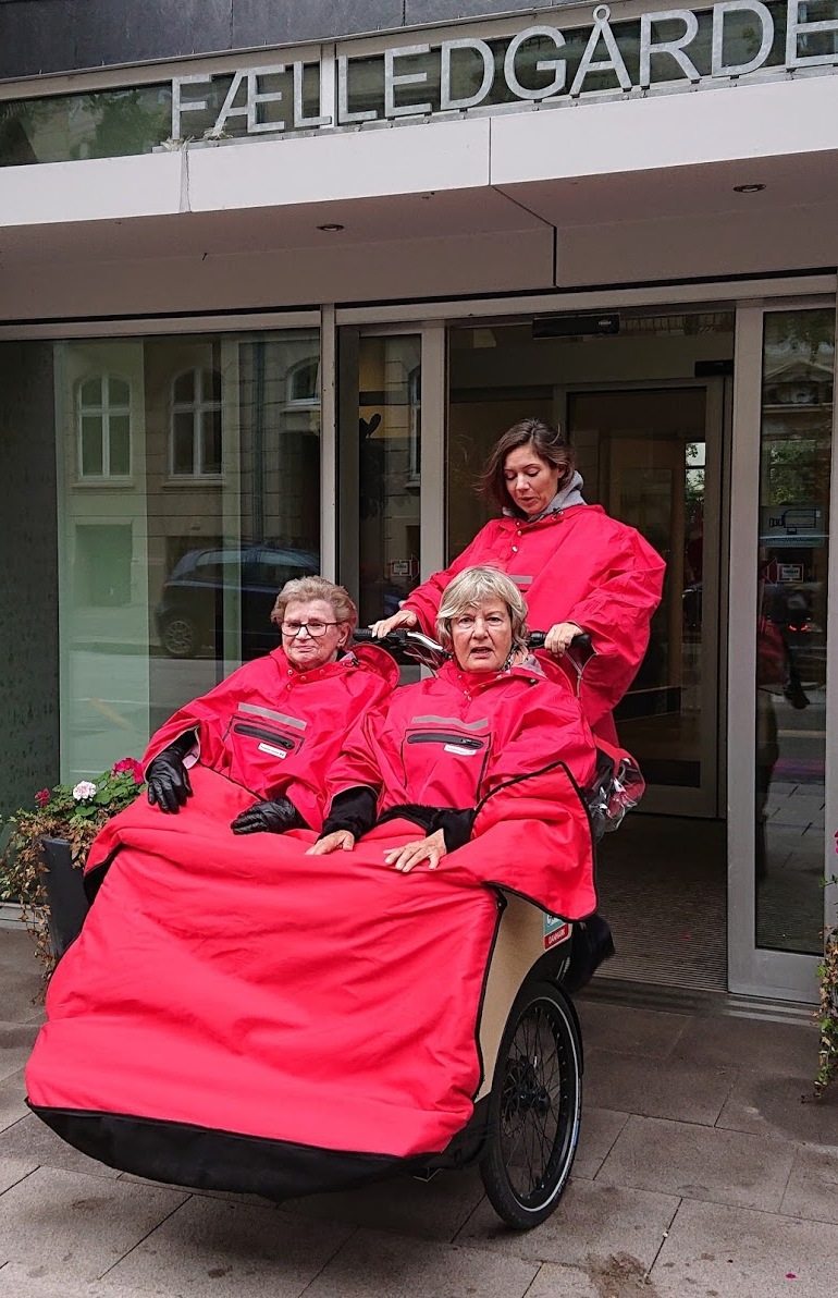 TPU coating keeps even the heaviest Danish downpour out — tested on years of Cycling Without Age rides.